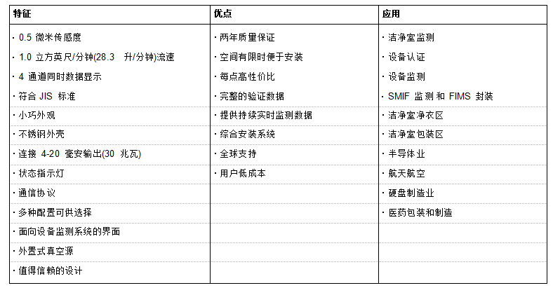 0.5 微米感應(yīng)度和 0.1 立方英尺/分鐘(2.83 行數(shù)/分鐘)流速. 遠(yuǎn)程 5104 具有實時監(jiān)測數(shù)據(jù)收集且每一點性價比*. 采用外置式真空源, 小型遠(yuǎn)程 5104 微粒計數(shù)器提供了多種選擇并能在有限的空間進(jìn)行安裝. 遠(yuǎn)程 5104 與多功能監(jiān)測管理系統(tǒng)連接并通過脈沖輸出 2 通道微粒計數(shù)數(shù)據(jù).